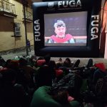 Un gran ambiente de expectación. Antes de iniciar los vecinos y vecinas de La Candelaria se iban acomodando en los puffs y las sillas y recibiendo la cortesía de aguapanela y crispetas por parte del cineclub. Un par de público perruno lanzaba de vez en cuando algún ladrido de admiración coincidiendo con los momentos más emocionantes de la película. El cineclub es un espacio pet friendly.